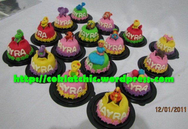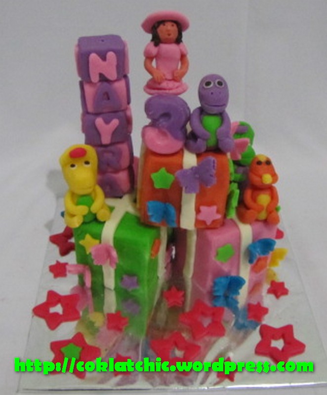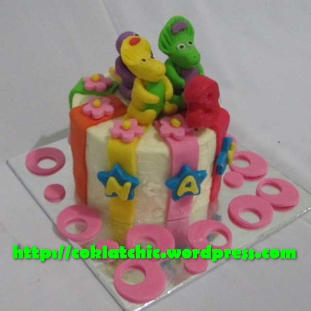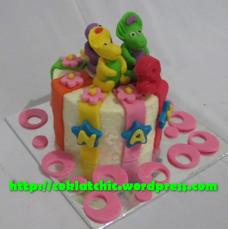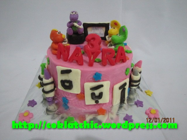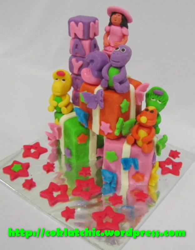 Minicake Barney dan teman-teman,cake barney dan teman-teman di sekolah mengaji dan miniature cake barney dan teman-teman – NAYRA Harga kue model ini dimulai dari Rp 125 ribu, topper dan pelapis terbuat dari coklat bukan fondant atau sugar icing Posted with WordPress for BlackBerry. Share this: Click to share on Facebook (Opens in new window) Facebook Like Loading... Related