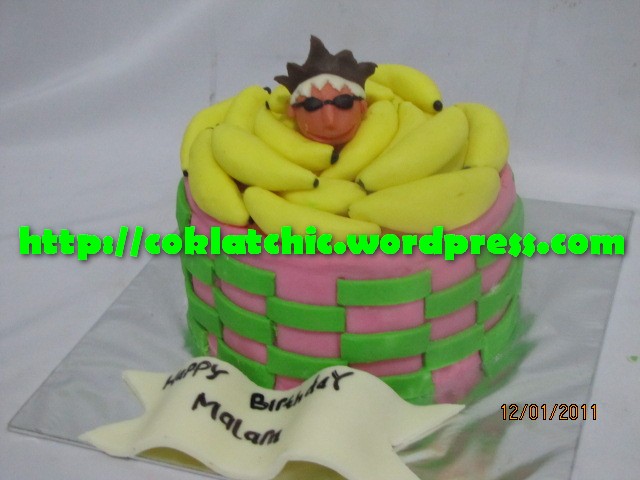 Kue pisang – MALAM Kue pisang model ini mulai dari harga Rp 200 ribu,topper dan pelapis terbuat dari coklat bukan fondant atau sugar icing Posted with WordPress for BlackBerry. Share this: Click to share on Facebook (Opens in new window) Facebook Like Loading... Related