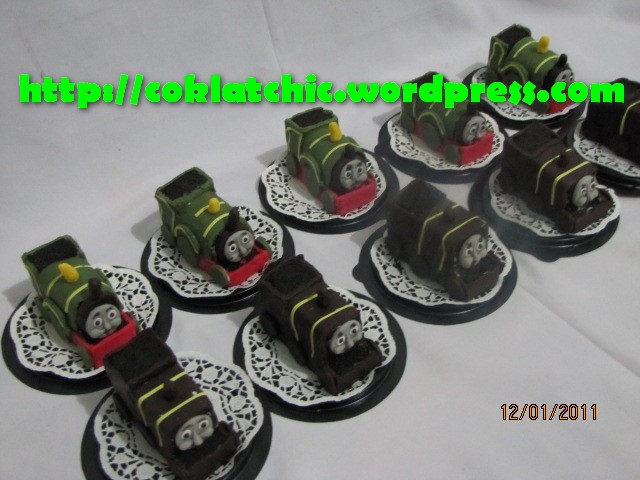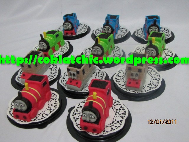Minicake Thomas the tank engine dan teman-teman Dilapisi oleh coklat bukan fondant atau sugar icing Posted with WordPress for BlackBerry. Share this: Click to share on Facebook (Opens in new window) Facebook Like Loading... Related