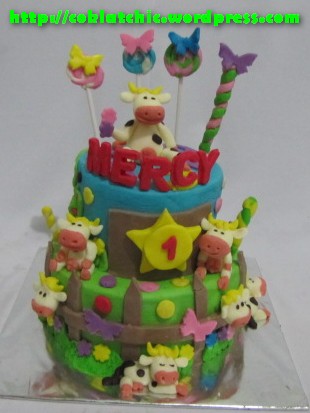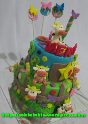 Kue peternakan sapi – MERCY Kue peternakan sapi model ini mulai dari harga Rp 300 ribu,dengan topper dan pelapis terbuat dari coklat bukan fondant atau sugar icing Posted with WordPress for BlackBerry. Share this: Share on Facebook (Opens in new window) Facebook Like Loading... Related