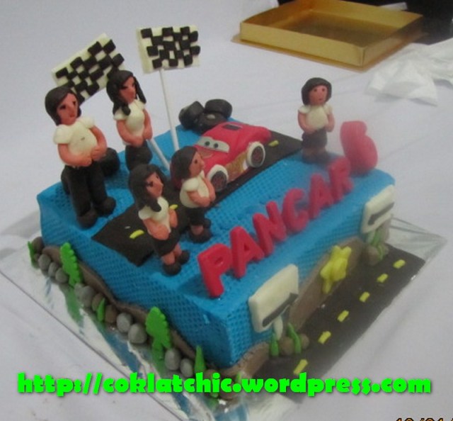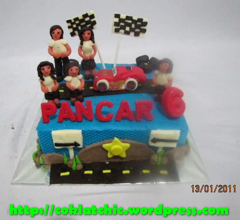 Lightning mc Queen cake – PANCAR Lightning mc Queen cake model ini mulai dari harga Rp 300 ribu,topper terbuat dari minicake yg dilapisi oleh coklat bukan fondant atau sugar icing Posted with WordPress for BlackBerry. Share this: Share on Facebook (Opens in new window) Facebook Like Loading... Related