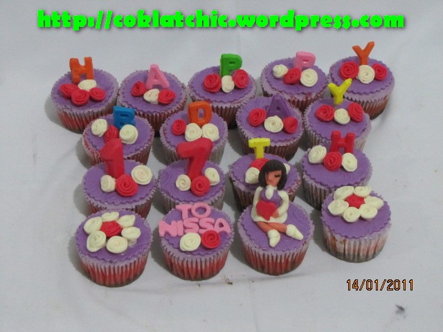Cupcake alphabet dan bunga – NISSA Topper dan pelapis terbuat dari coklat bukan fondant atau sugar icing Posted with WordPress for BlackBerry. Share this: Share on Facebook (Opens in new window) Facebook Like Loading... Related