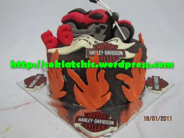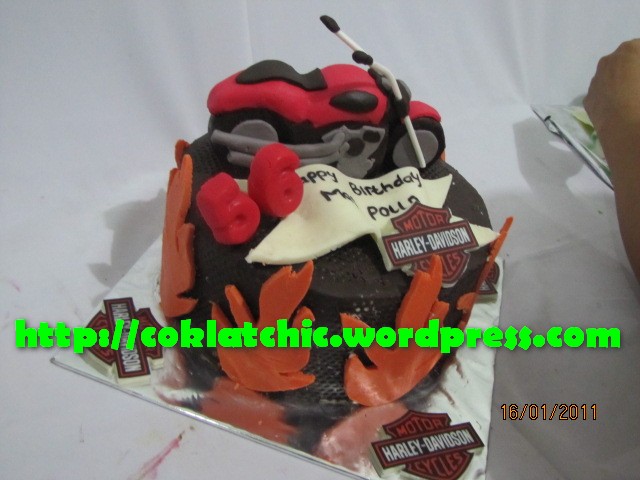 Kue Motor Harley Davidson Kue Harley Davidson model ini mulai dari harga Rp 250 ribu,dgn motor terbuat dari crafted cake,pelapis dan topper terbuat dari coklat bukan fondant atau sugar icing Posted with WordPress for BlackBerry. Share this: Share on Facebook (Opens in new window) Facebook Like Loading... Related