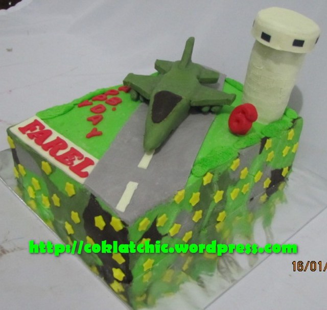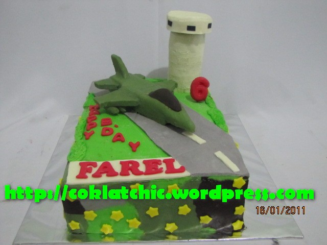 Kue pesawat militer – FAREL Harga kue pesawat militer mulai dari Rp 350 ribu dengan topper dan pelapis terbuat dari coklat bukan fondant atau sugar icing. Pesawat dan tower terbuat dari crafted cake. Posted with WordPress for BlackBerry. Share this: Share on Facebook (Opens in new window) Facebook Like Loading... Related