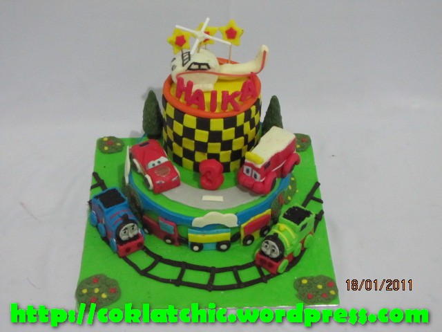 Cake Thomas,finley dan cars,minicake thomas,minicake cars,minicake princess dan cupcake princess – HAIKAL Kue ulang tahun tema thomas,cars dan finley ini mulai dari Rp 400 ribu dgn topper terbuat dari minicake,dilapisi coklat bukan fondant atau sugar icing Share this: Click to share on Facebook (Opens in new window) Facebook Like Loading... Related