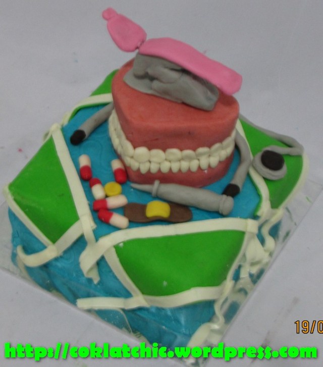 Kue dokter gigi Harga Kue dokter gigi ini mulai dari Rp 350 ribu topper dan pelapis terbuat dari coklat bukan fondant atau sugar icing Posted with WordPress for BlackBerry. Share this: Click to share on Facebook (Opens in new window) Facebook Like Loading... Related