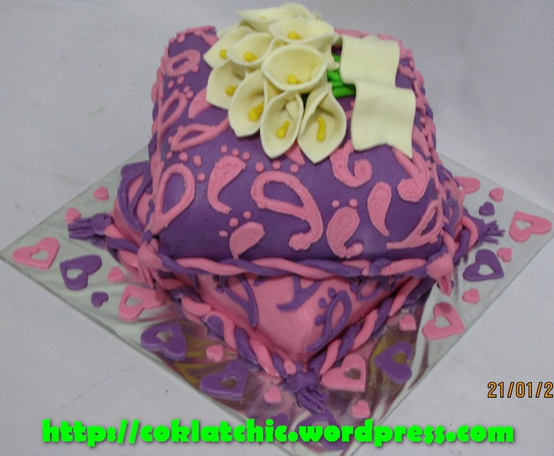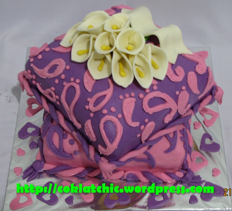 Kue bunga cana lily dan bantal Harga Kue bunga cana lily dan bantal mulai dari Rp 500 ribu,dengan topper dan pelapis terbuat dari coklat bukan fondant atau sugar icing Posted with WordPress for BlackBerry. Share this: Share on Facebook (Opens in new window) Facebook Like Loading... Related