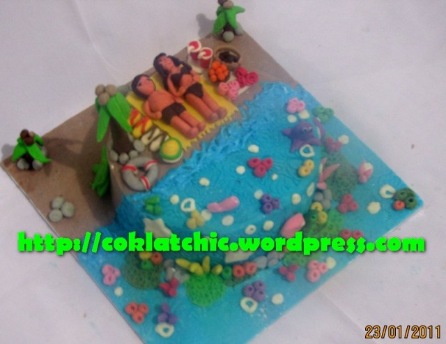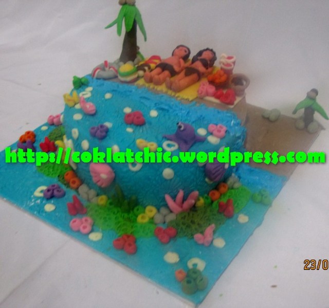 Pantai cake Kue anniversary dengan tema Pantai cake ini dimulai dari harga Rp 250 ribu dengan topper dan pelapis terbuat dari coklat bukan fondant atau sugar icing Posted with WordPress for BlackBerry. Share this: Share on Facebook (Opens in new window) Facebook Like Loading... Related