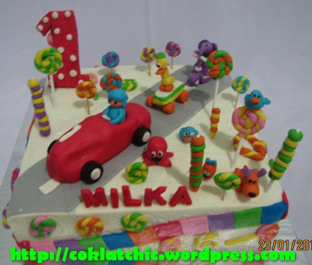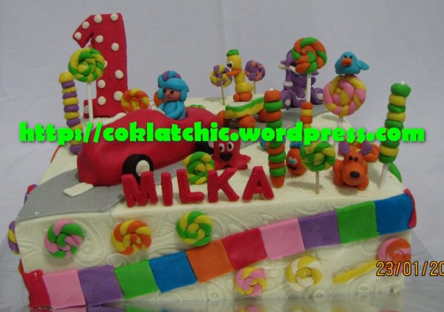 Cake Pocoyo dan teman-teman – MILKA Kue ulang tahun dengan tema Cake Pocoyo dan teman-teman model ini mulai dari harga Rp 600 ribu,dengan topper dan pelapis terbuat dari coklat bukan fondant atau sugar icing Posted with WordPress for BlackBerry. Share this: Share on Facebook (Opens in new window) Facebook Like Loading... Related