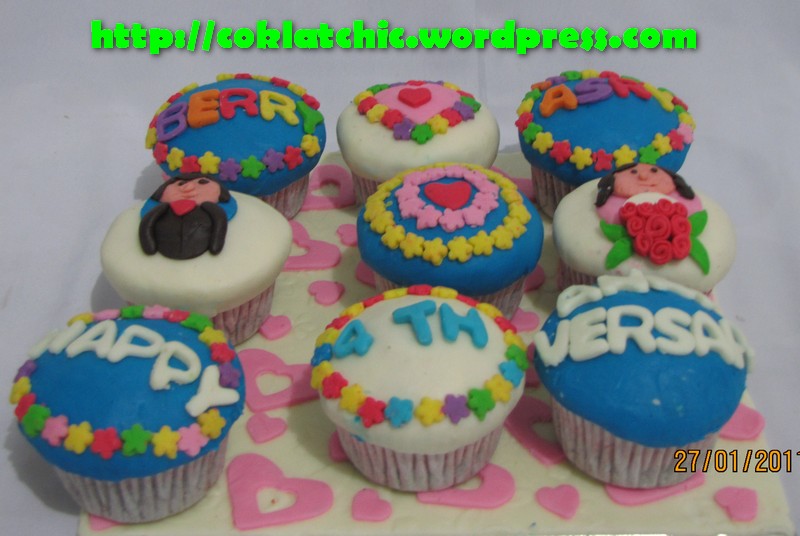 Anniversary cupcake – BERRY dan ASRI Cupcake anniversary set topper dan pelapis terbuat dari coklat bukan fondant atau sugar icing Posted with WordPress for BlackBerry. Share this: Share on Facebook (Opens in new window) Facebook Like Loading... Related