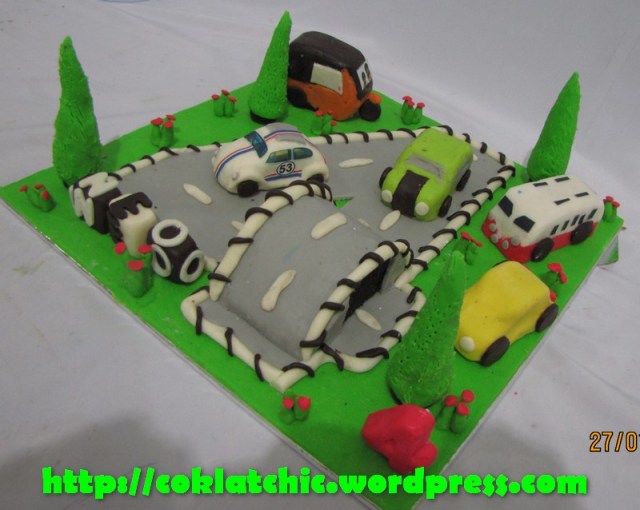 Harga kue ulang tahun tema Cake Herbie,vw combi dan bajaj mulai dari Rp 150 ribu,dengan topper terbuat dari minicake dan pelapis terbuat dari coklat bukan fondant atau sugar icing