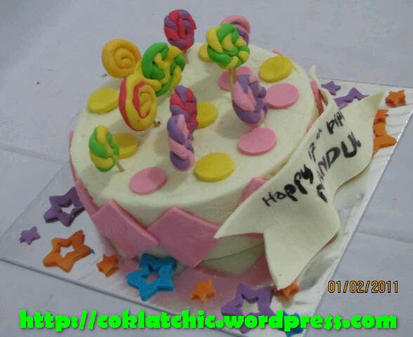 Candy Cake Harga kue ulang tahun dengan tema Candy Cake model ini mulai dari harga Rp 200 ribu,dengan topper dan pelapis terbuat dari coklat bukan fondant atau sugar icing Posted with WordPress for BlackBerry. Share this: Click to share on Facebook (Opens in new window) Facebook Like Loading... Related