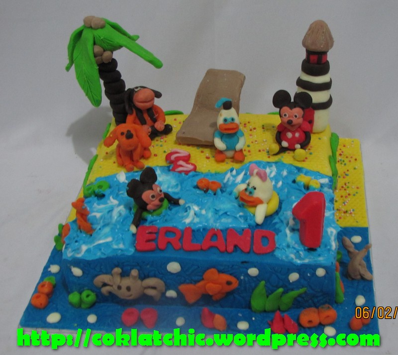 Cake Mickey dan teman-teman di pantai – ERLAND Kue ulang tahun dengan tema Cake Mickey dan teman-teman di pantai model ini mulai dari harga Rp 300 ribu Pelapis terbuat dari coklat bukan fondant atau sugar icing. Posted with WordPress for BlackBerry. Share this: Share on Facebook (Opens in new window) Facebook Like Loading... Related
