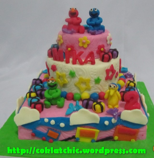 Cake Sesame Street – MIKA Harga kue ulang tahun dengan tema Cake Sesame Street model ini mulai dari harga Rp 600 ribu. Pelapis terbuat dari coklat bukan fondant atau sugar icing. Posted with WordPress for BlackBerry. Share this: Share on Facebook (Opens in new window) Facebook Like Loading... Related