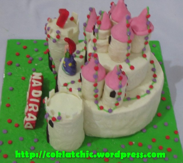 Castle Princess cake – NADIRA Kue ulang tahun dengan tema Castle Princess cake model ini mulai dari harga Rp 450 ribu. Pelapis terbuat dari coklat bukan fondant atau sugar icing. Posted with WordPress for BlackBerry. Share this: Share on Facebook (Opens in new window) Facebook Like Loading... Related