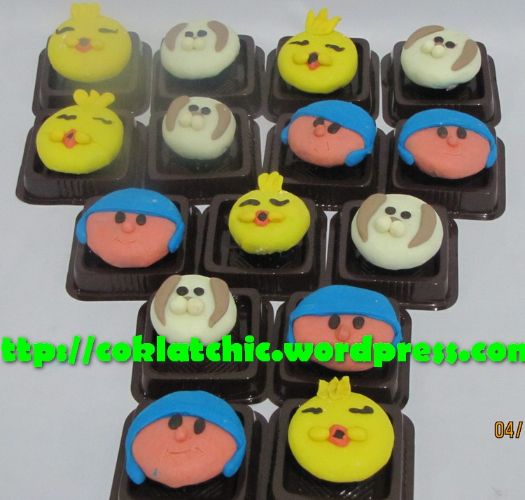Minicupcake pororo,minicupcake anak ayam,minicupcake anjing Pelapis terbuat dari coklat bukan fondant atau sugar icing Posted with WordPress for BlackBerry. Share this: Share on Facebook (Opens in new window) Facebook Like Loading... Related