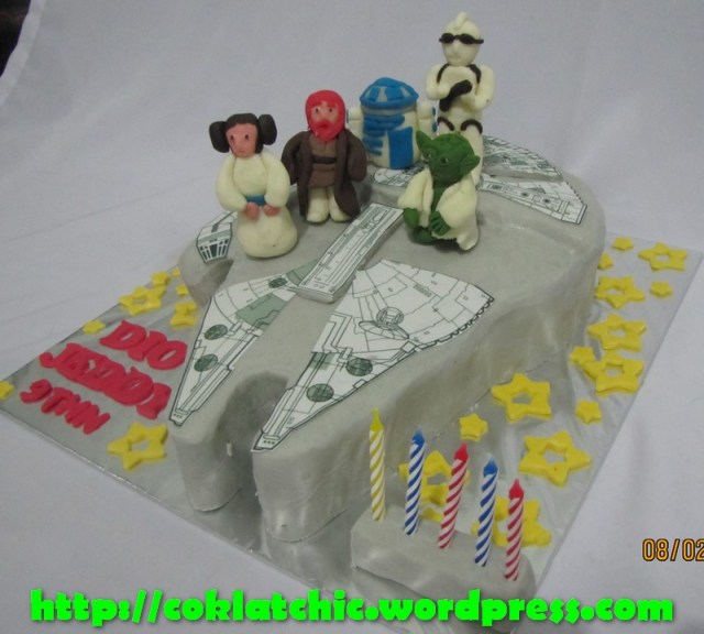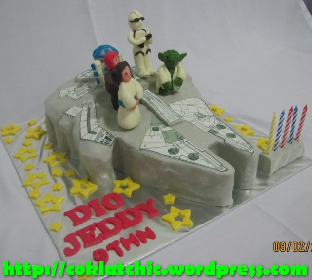 Star Wars Cake – DIO JEDDY Kue ulang tahun dengan tema Star Wars Cake model ini mulai dari harga Rp 450 ribu. Pelapis terbuat dari coklat bukan fondant atau sugar icing. Posted with WordPress for BlackBerry. Share this: Share on Facebook (Opens in new window) Facebook Like Loading... Related