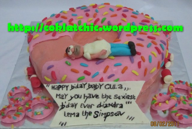 Simpson cake – DIANDRA Kue ulang tahun tema Simpson cake model ini mulai dari harga Rp 400 ribu. Pelapis terbuat dari coklat bukan fondant atau sugar icing. Posted with WordPress for BlackBerry. Share this: Click to share on Facebook (Opens in new window) Facebook Like Loading... Related