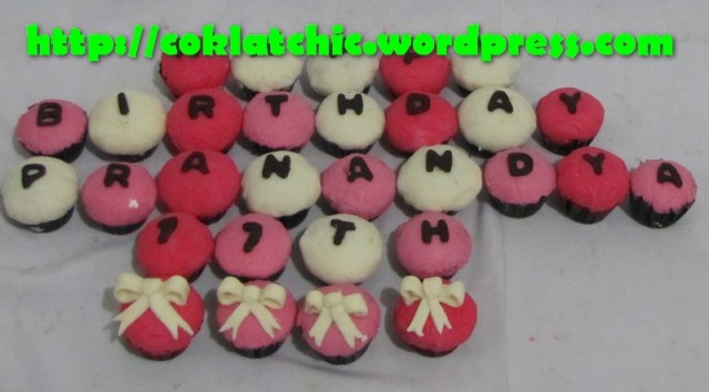 Alphabet minicupcake dan pita minicupcake Pelapis terbuat dari coklat bukan fondant atau sugar icing. Posted with WordPress for BlackBerry. Share this: Click to share on Facebook (Opens in new window) Facebook Like Loading... Related