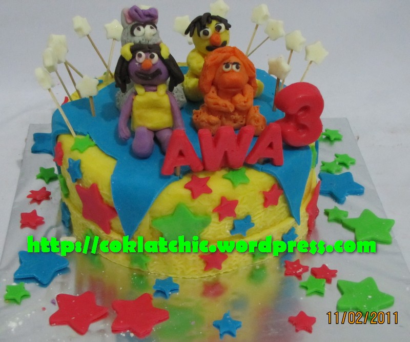 Cake Sesame Street – AWA Kue ulang tahun dengan tema Cake Sesame Street model ini mulai dari harga Rp 200 ribu Pelapis terbuat dari coklat bukan fondant atau sugar icing. Posted with WordPress for BlackBerry. Share this: Share on Facebook (Opens in new window) Facebook Like Loading... Related