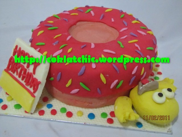 Cake Simpsons Kue ulang tahun dengan tema Cake Simpson model ini mulai dari harga Rp 300 ribu. Pelapis terbuat dari coklat bukan fondant atau sugar icing. Posted with WordPress for BlackBerry. Share this: Click to share on Facebook (Opens in new window) Facebook Like Loading... Related