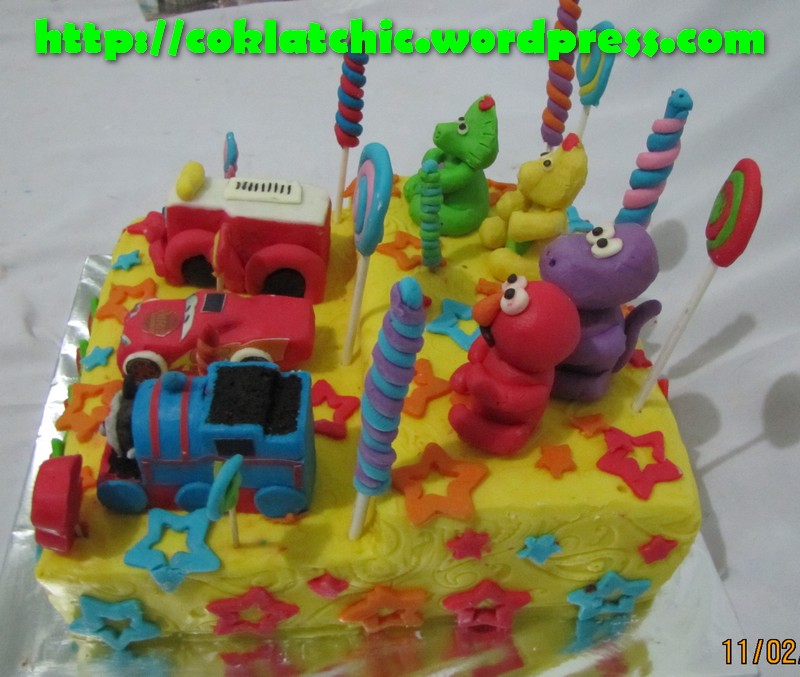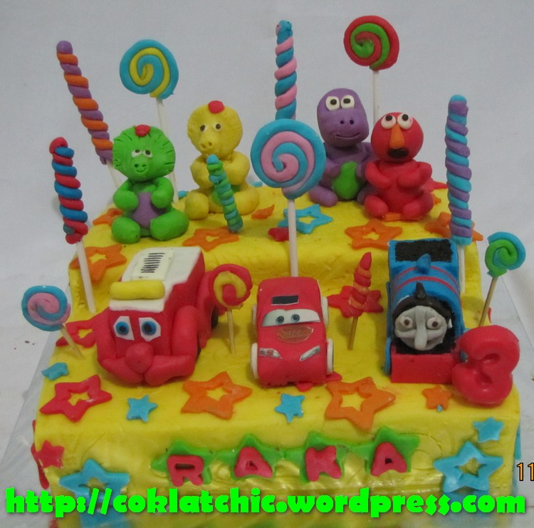 Cake Barney, elmo, finley, thomas dan cars – RAKA Kue ulang tahun dengan tema Cake Barney, elmo, finley, thomas dan cars model ini mulai dari harga Rp 450 ribu. Pelapis terbuat dari coklat bukan fondant atau sugar icing. Posted with WordPress for BlackBerry. Share this: Click to share on Facebook (Opens in new window) Facebook Like Loading... Related