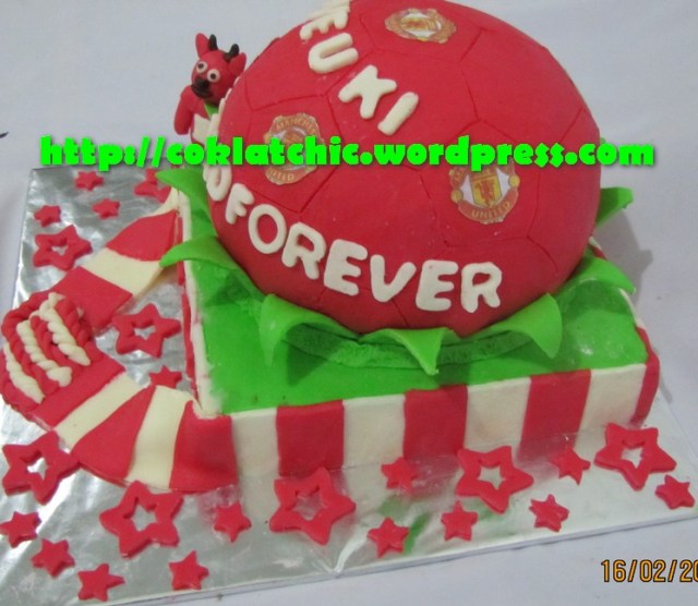 Cake Manchester United – KI Kue ulang tahun dengan tema Cake Manchester United model ini mulai dari harga Rp 400 ribu Pelapis terbuat dari coklat bukan fondant atau sugar icing. Posted with WordPress for BlackBerry. Share this: Click to share on Facebook (Opens in new window) Facebook Like Loading... Related