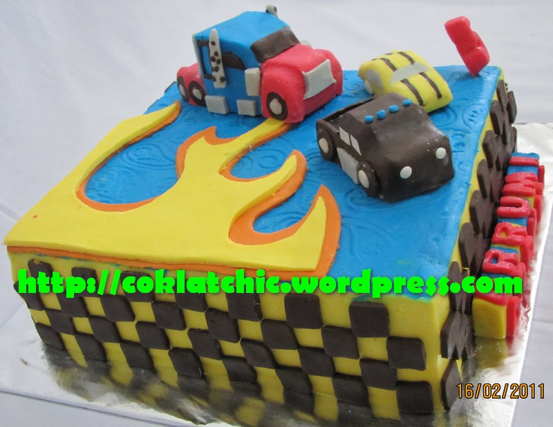 Kue ulang tahun dengan tema Transformer cake dengan Bumble bee, optimus prime dan iron hide model ini mulai dari harga Rp 450 ribu