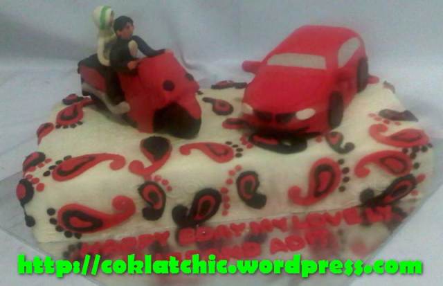 Cake Motor Ninja 250R merah dan mobil bmw serii 116 – ADIT Kue ulang tahun dengan tema Cake Motor Ninja 250R merah dan mobil bmw serii 116 model ini mulai dari Rp 600 ribu Pelapis terbuat dari coklat bukan fondant atau sugar icing. Posted with WordPress for BlackBerry. Share this: Share on Facebook (Opens in new window) Facebook Like Loading... Related