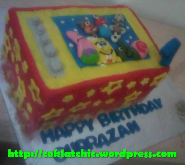 Cake spongebob di TV – RAZZAN Kue ulang tahun dengan tema Cake spongebob di TV model ini mulai dari harga Rp 300 ribu Pelapis terbuat dari coklat bukan fondant atau sugar icing. Posted with WordPress for BlackBerry. Share this: Click to share on Facebook (Opens in new window) Facebook Like Loading... Related