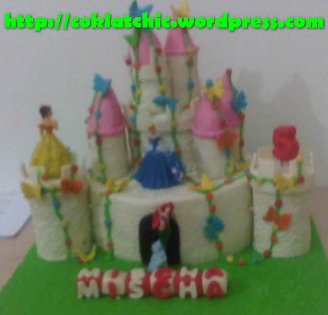 Cake castle Princess – MISCHA Kue ulang tahun dengan tema Cake castle Princess model ini mulai dari harga Rp 500 ribu Pelapis terbuat dari coklat bukan fondant atau sugar icing. Posted with WordPress for BlackBerry. Share this: Share on Facebook (Opens in new window) Facebook Like Loading... Related