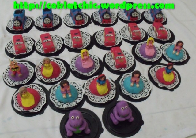 Minicake Thomas,minicake cars,minicake princess,minicake asterix,minicake barney,minicake dora Pelapis terbuat dari coklat bukan fondant atau sugar icing. Posted with WordPress for BlackBerry. Share this: Click to share on Facebook (Opens in new window) Facebook Like Loading... Related