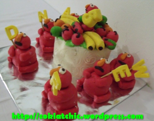 Kue ulang tahun dengan tema Cake Elmo dan buah2an model ini mulai dari harga Rp 275 ribu