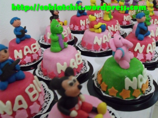 Minicake barney,minicake mickey,minicake winnie the pooh,minicake pocoyo – NABIL Terbuat dari kue yang dipahat,no styrofoam. Pelapis terbuat dari coklat bukan fondant atau sugar icing. Posted with WordPress for BlackBerry. Share this: Share on Facebook (Opens in new window) Facebook Like Loading... Related