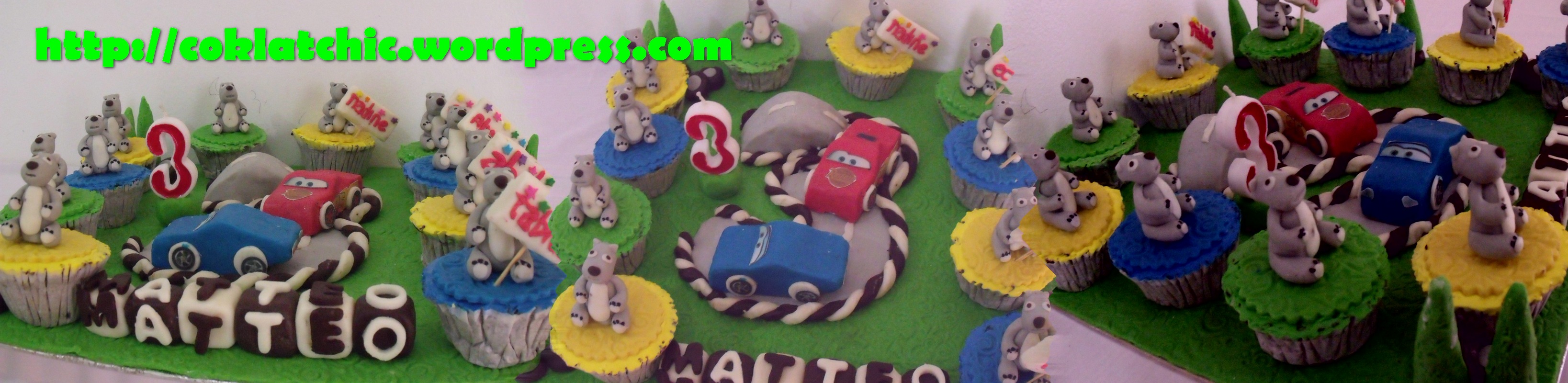 Kue ulang tahun dengan tema Cake lightning mc queen dan cupcake bernard bear model ini mulai dari harga Rp 250 ribu