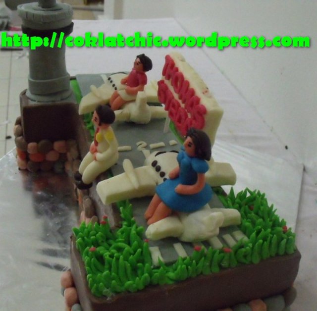 Terbuat dari kue yang dipahat,no styrofoam. Pelapis terbuat dari coklat bukan fondant atau sugar icing. Posted with WordPress for BlackBerry.