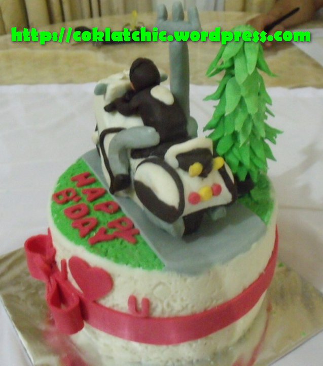 Terbuat dari kue yang dipahat,no styrofoam. Pelapis terbuat dari coklat bukan fondant atau sugar icing. Posted with WordPress for BlackBerry.
