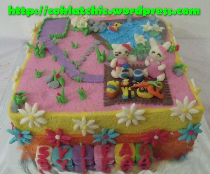 Kue ulang tahun dengan tema Cake Hello Kitty dan Melodie model ini mulai dari harga Rp 400 rrribu