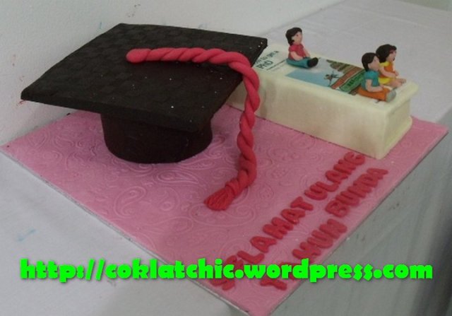 Kue ulang tahun dengan tema Cake topi toga dan buku model ini mulai dari harga Rp 300 ribu