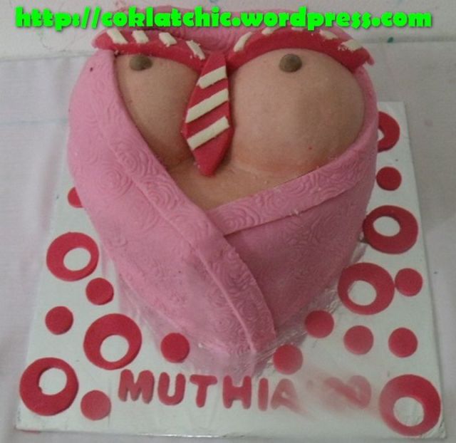 Cake boobs – MUTHIA Kue ulang tahun dengan tema Cake boobs model ini mulai dari Rp 200 ribu Terbuat dari kue yang dipahat,no styrofoam. Pelapis terbuat dari coklat bukan fondant atau sugar icing. Posted with WordPress for BlackBerry. Share this: Share on Facebook (Opens in new window) Facebook Like Loading... Related