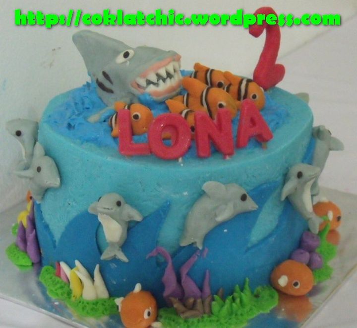 Kue ulang tahun dengan tema Cake tema laut, lumba-lumba, hiu, nemo model ini mulai dari harga Rp 200 ribu