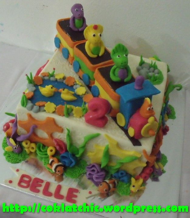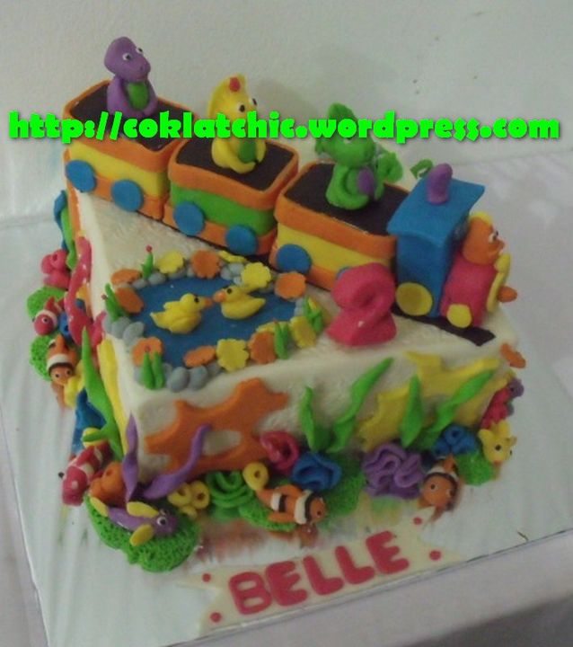 Kue ulang tahun dengan tema Cake Barney dan teman-teman model ini mulai dari harga Rp 350 ribu