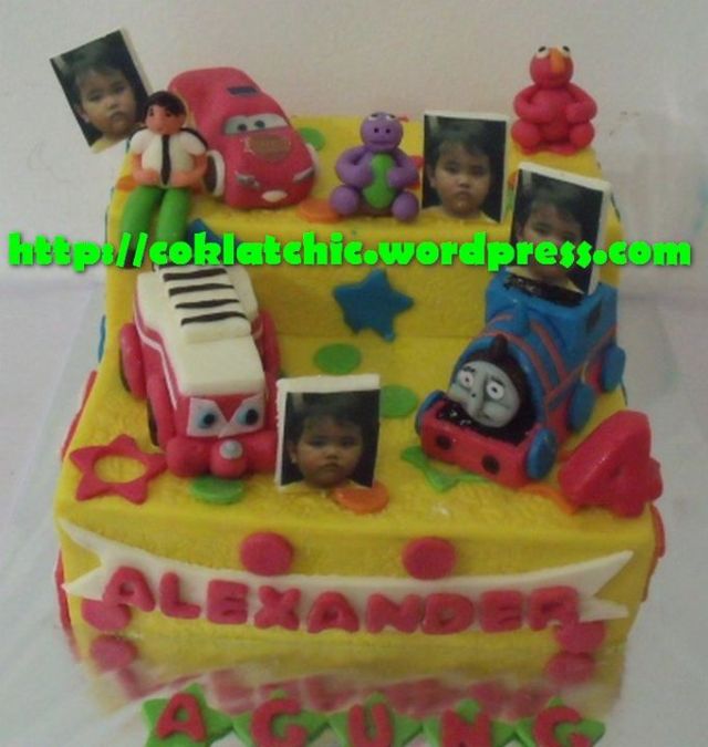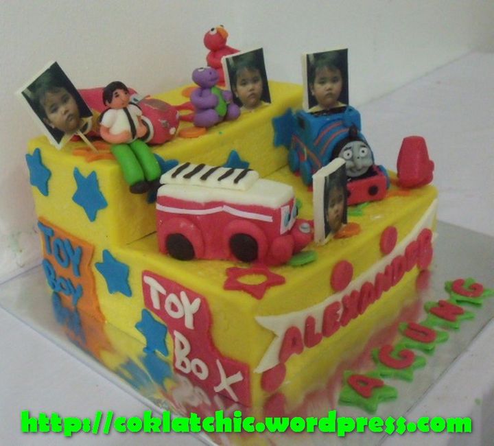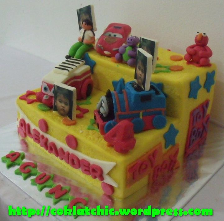 Kue ulang tahun dengan tema Cake Toybox dengan finley, thomas,ben10, cars, sesame street dan barney model ini mulai dari Rp 400 ribu