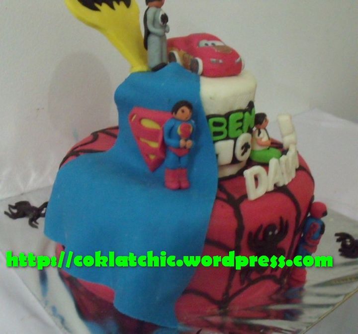 Kue ulang tahun dengan tema Cake tema superhero batman, spiderman, ben10, naruto, lightning mc queen model ini mulai dari Rp 550 ribu
