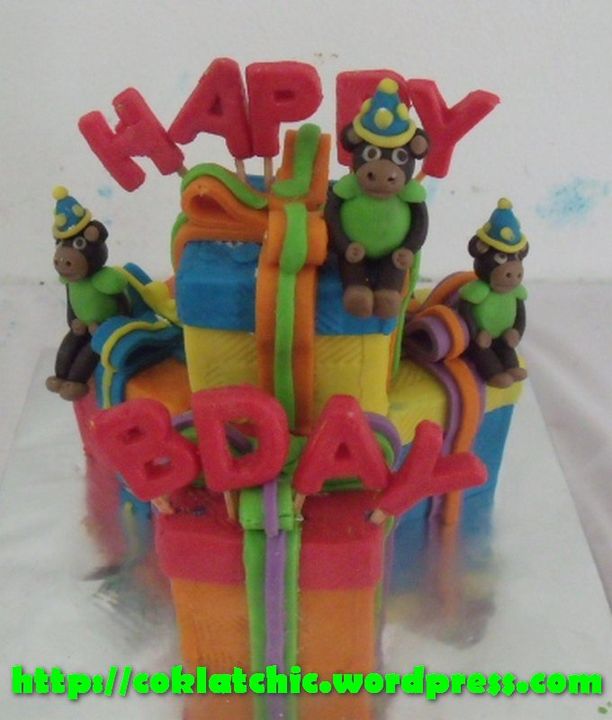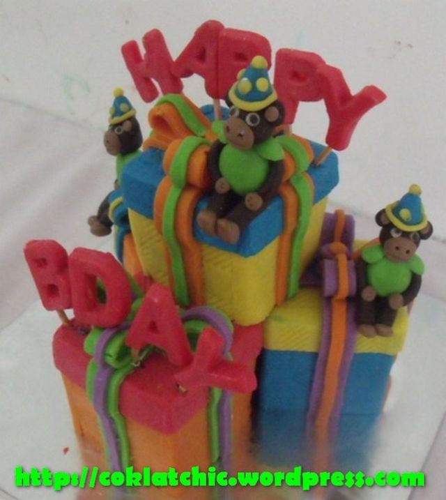 Kue ulang tahun dengan tema Miniature cake monkey party model ini mulai dari Rp 125 ribu