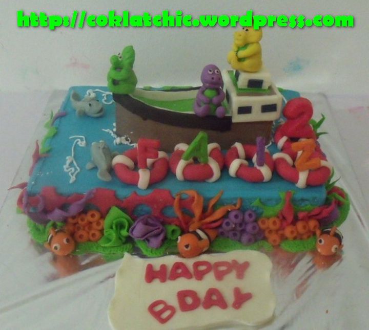 Kue ulang tahun dengan tema Cake Barney dan Nemo model ini mulai dari Rp 350 ribu