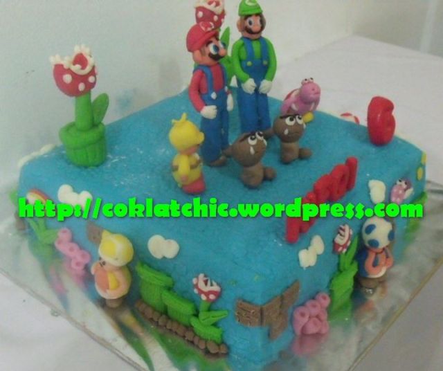 Kue ulang tahun dengan tema Cake Mario Bros model ini mulai dari harga Rp 450 ribu