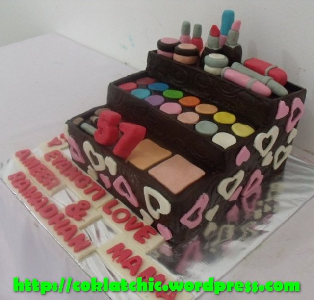 Kue ulang tahun dengan tema Cake make up bag kit model ini mulai dari Rp 350 ribu
