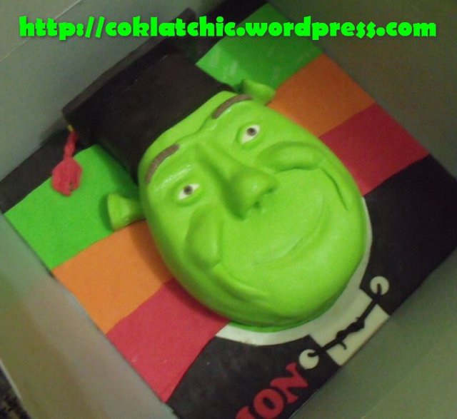Kue ulang tahun dengan tema Cake Shrek dengan toga model ini mulai dari harga Rp 350 ribu