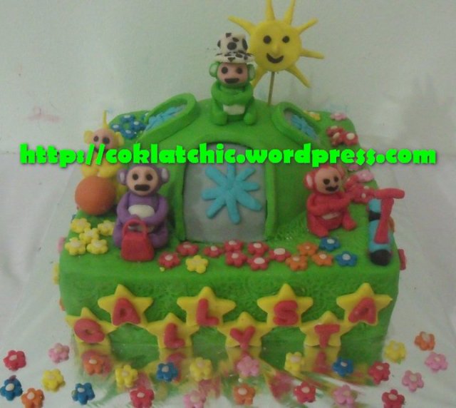 Kue ulang tahun dengan tema Cake Teletubbies model ini mulai dari harga Rp 400 ribu